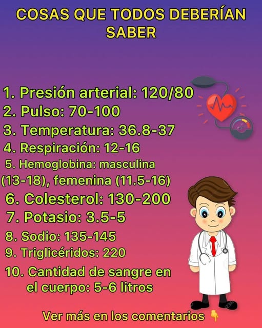 Para que tengas una idea de cuál de be ser tu presión sanguínea mira esta lista: