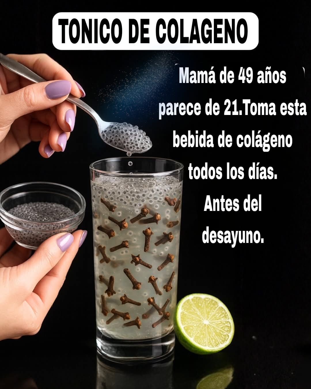 Los sérums tópicos pueden suavizar la superficie, pero la luminosidad real y duradera comienza bajo la piel. Al nutrir la red de colágeno desde el interior, las líneas de expresión se suavizan gradualmente, las manchas oscuras se atenúan y la piel recupera su tersura y vitalidad juvenil. Esta bebida combina tres ingredientes básicos de la cocina: clavo, limón y semillas de chía, y los combina con cúrcuma, miel cruda, jengibre, menta, pimienta negra y agua tibia filtrada. Juntos, aportan una fuente inagotable de vitamina C, omega-3, polifenoles y compuestos antiinflamatorios. Consumida de forma regular, esta mezcla ayuda a estimular la formación de nuevas fibras de colágeno, protege las existentes del daño de los radicales libres y unifica la decoloración, a la vez que hidrata cada célula.